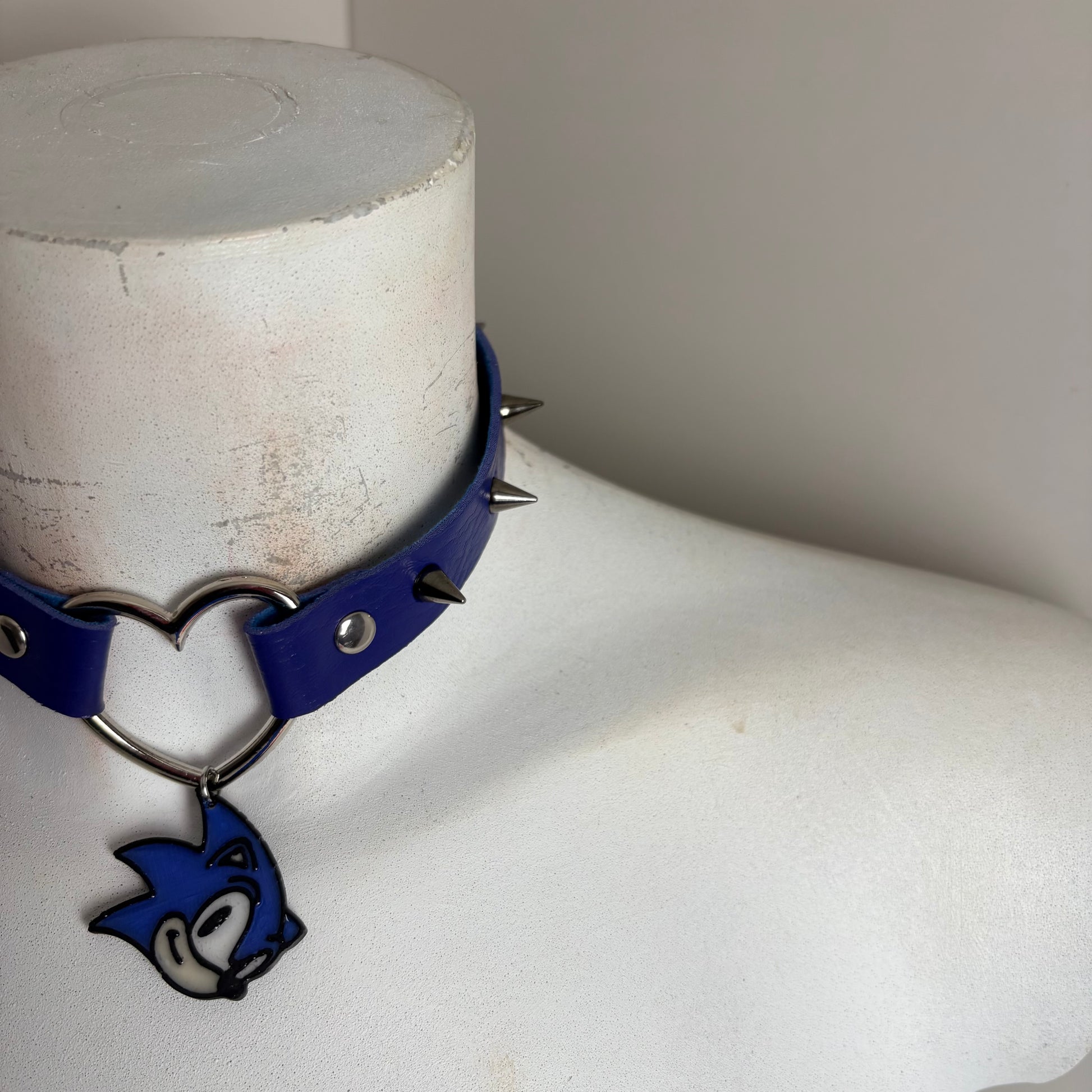 Chocker blu con ciondolo pendente di Sonic. Chiusura di circa 40 cm