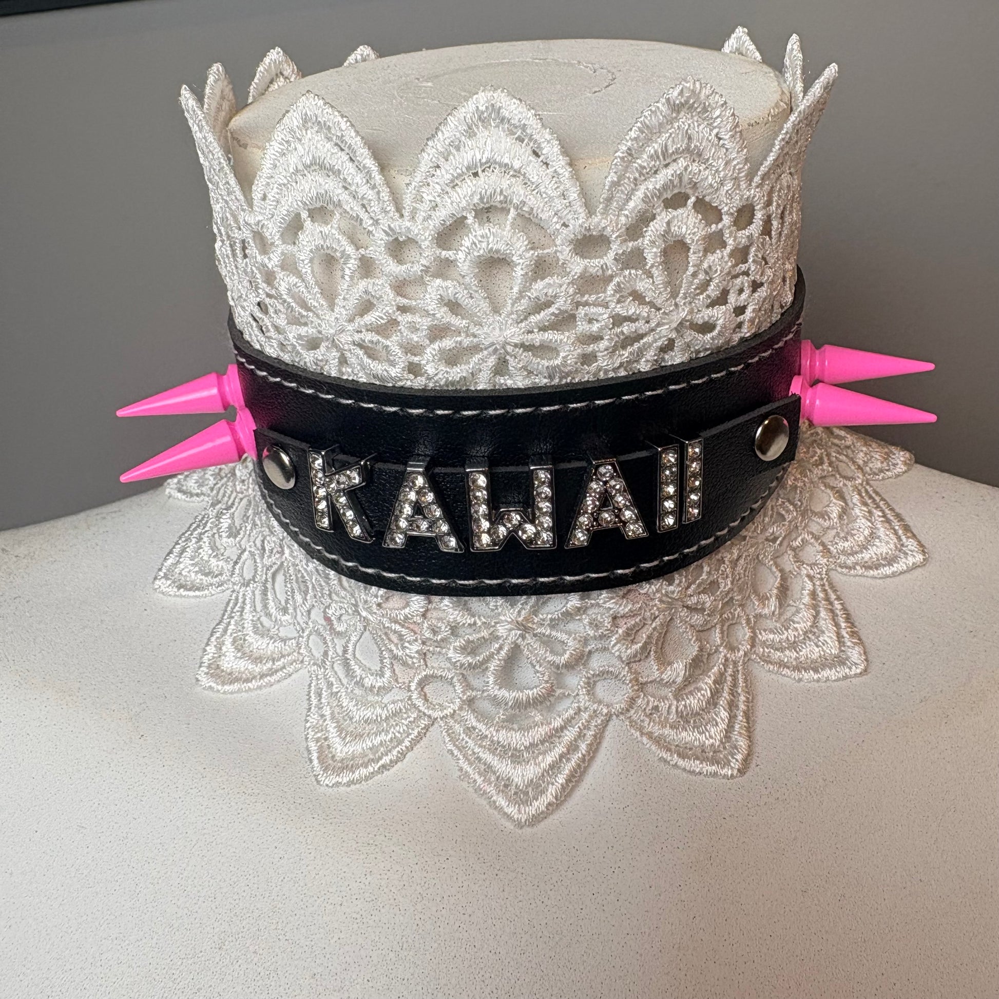 Chocker nero con pizzo e scritta “kawaii”. Chiusura regolabile di circa 42 cm