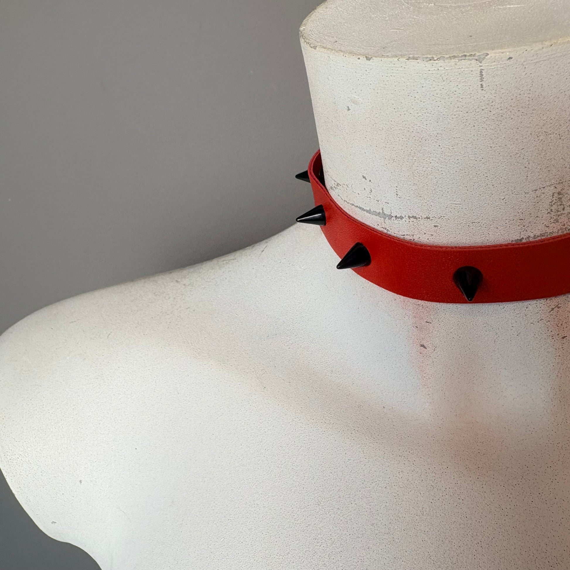 Chocker rosso con borchie nere. Regolabile a cintura fino a 42 cm
