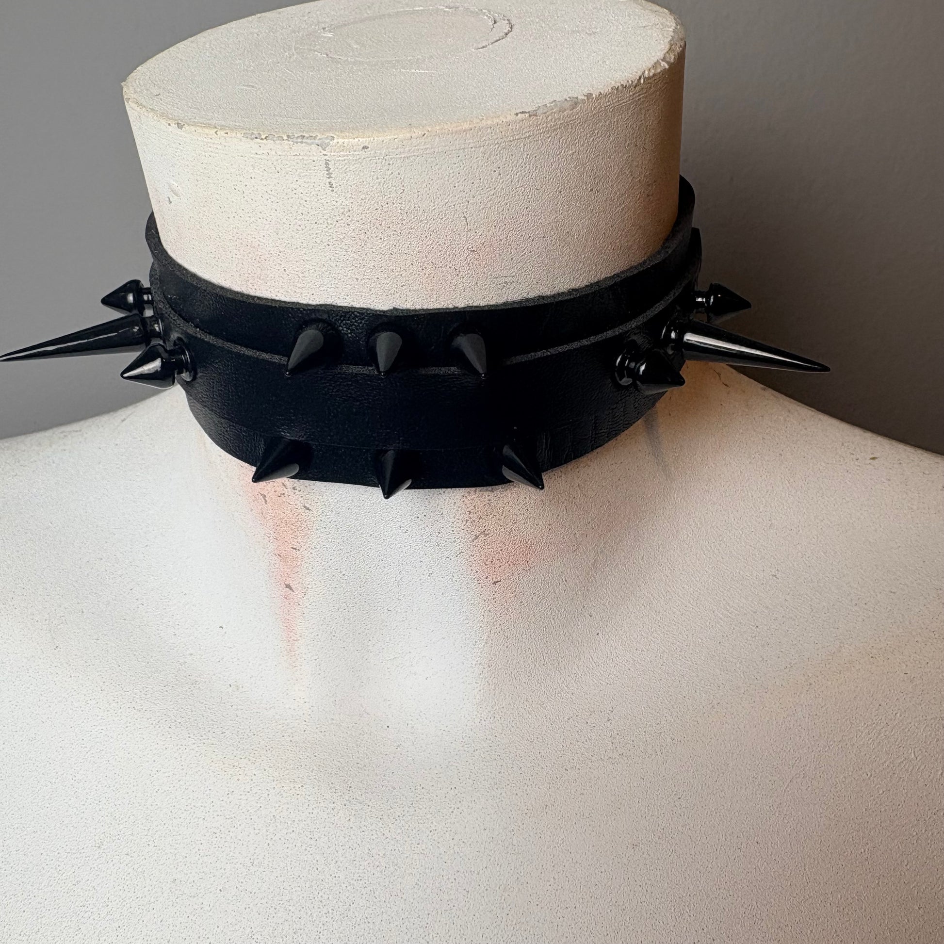 Chocker total black con borchie nere lunghe e cerchio nero oppure tutto unito. Chiusura regolabile di circa 45 cm