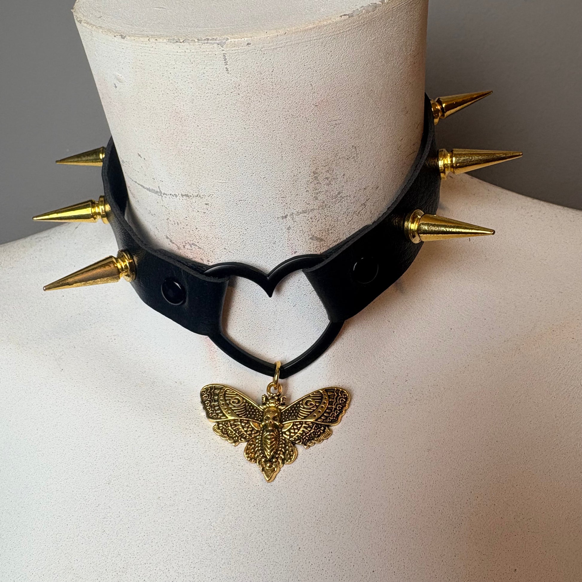 Chocker total black con falena e borchie oro. Chiusura regolabile di circa 42 cm