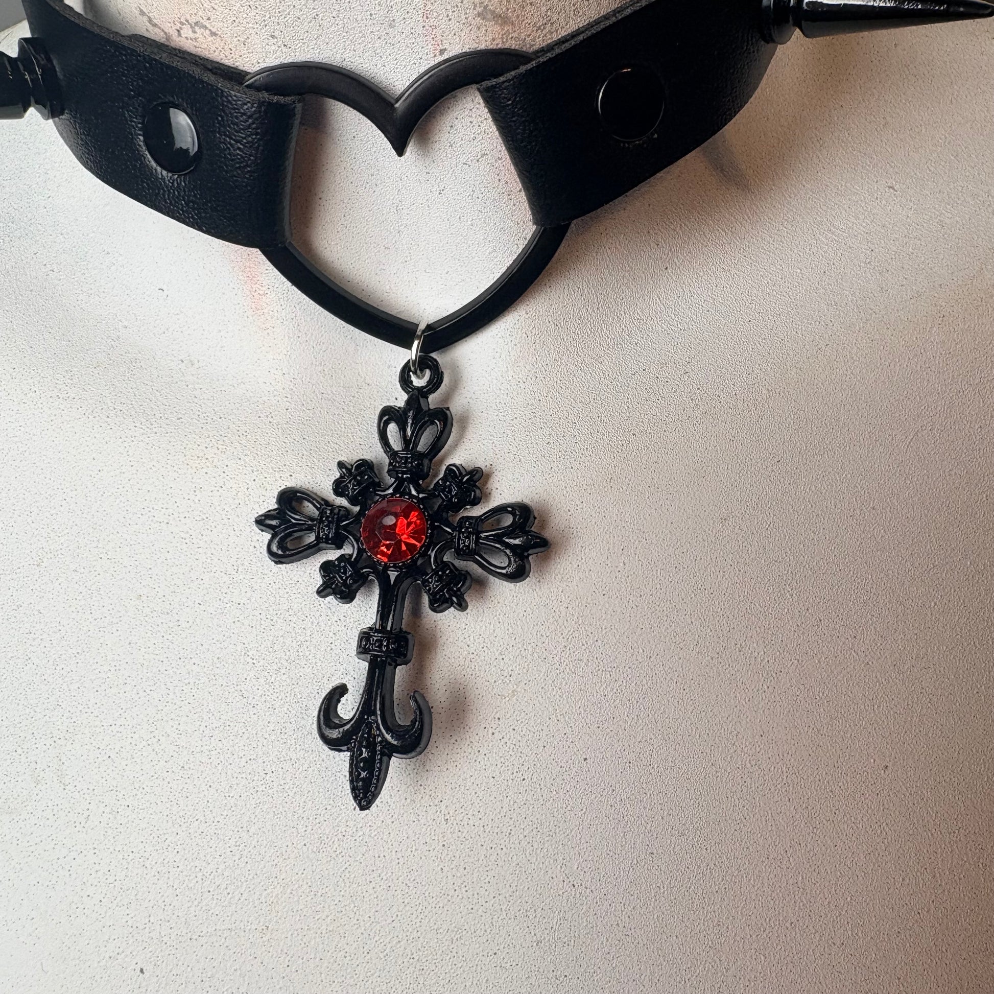 Chocker total black con cuore nero e croce tutta nera oppure nera con punto luce rosso.