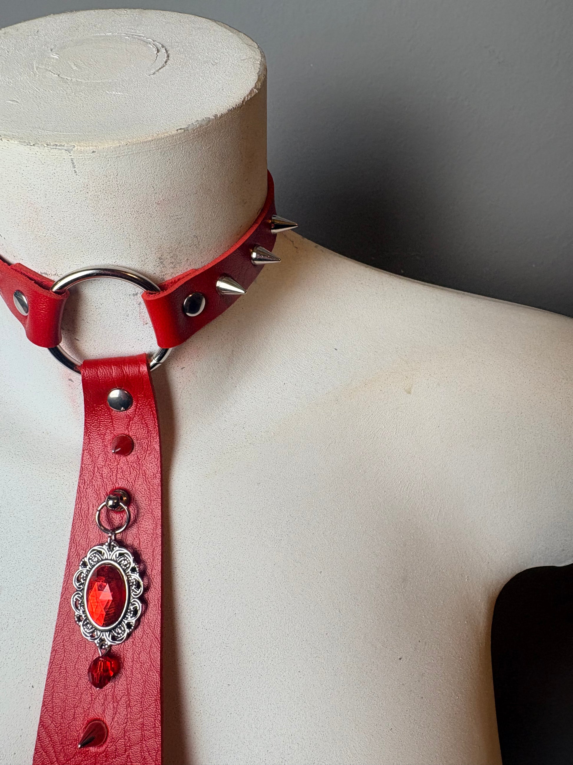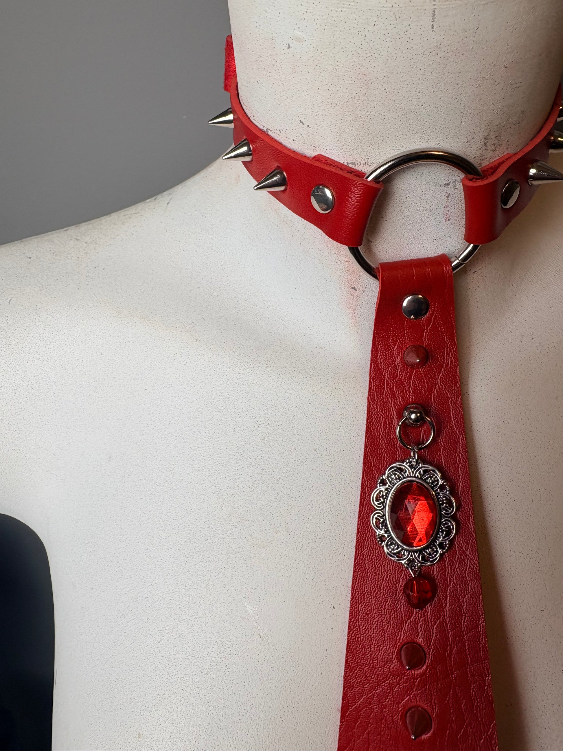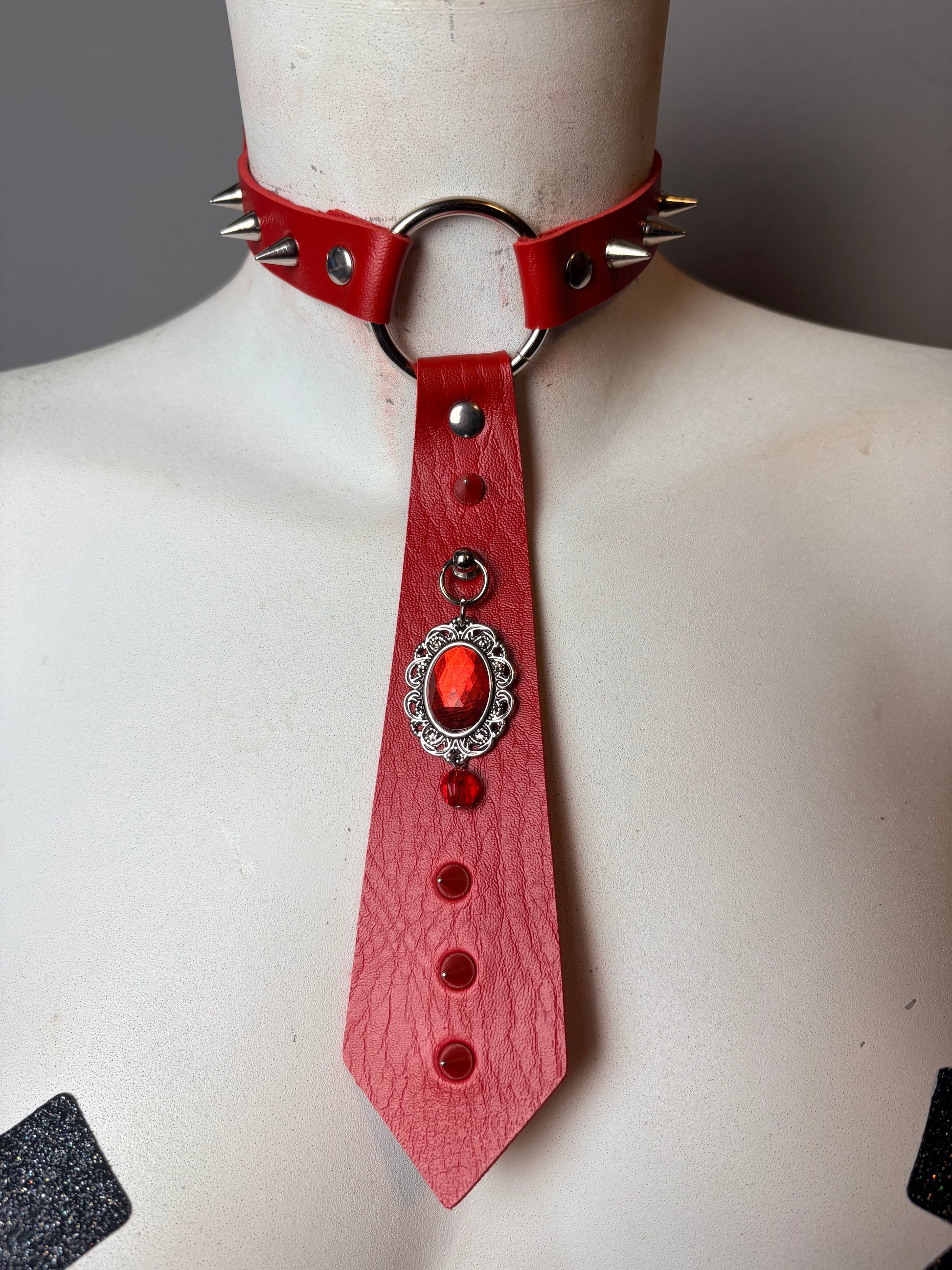 Cravatta rossa con pietra e borchie